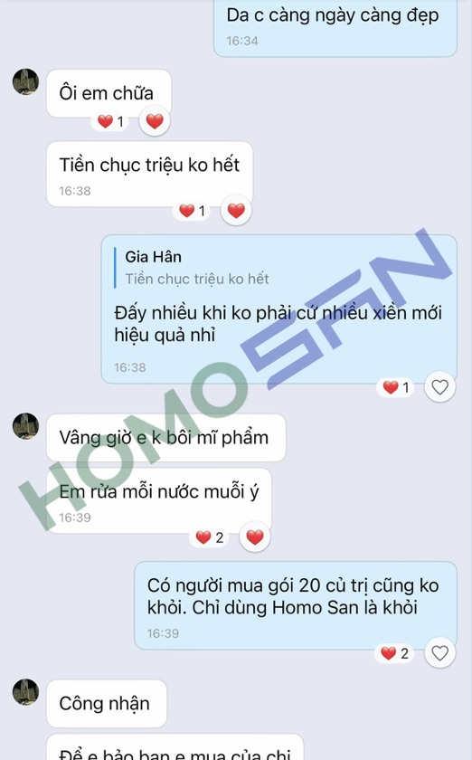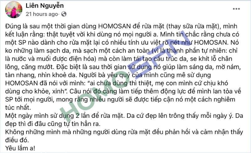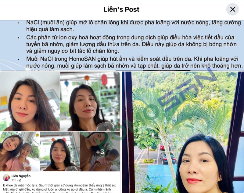 Hình 2: Bài viết chia sẻ về hiệu qủa sử dụng HomoSAN chăm sóc da mặt
