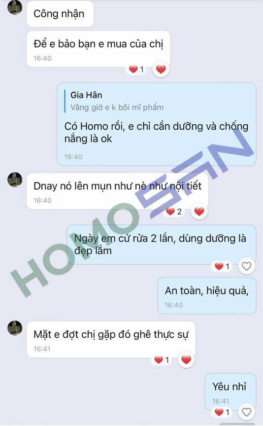 Kết quả chăm sóc da mặt tuyệt vời bằng HomoSAN, giảm mụn, da sáng mịn