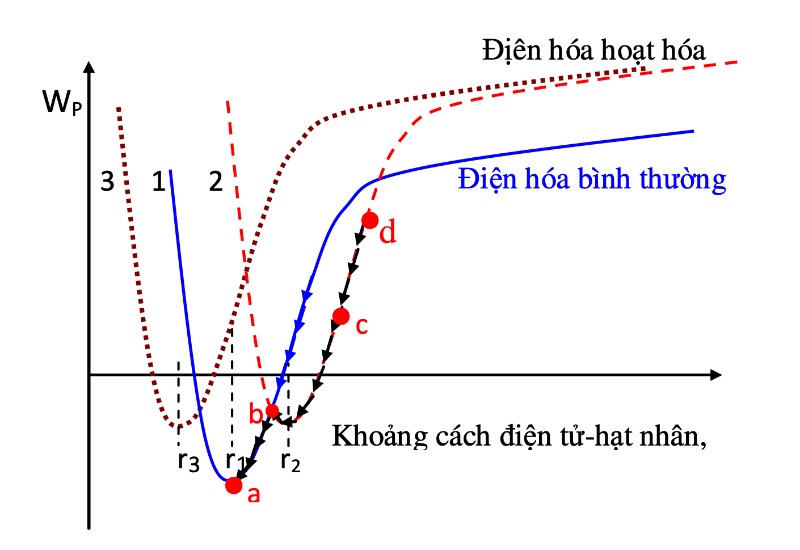 Biểu đồ đường cong thế năng của một chất trong quá trình điện hoá, các phân tử ion điện hoá hoạt hoá được kích hoạt nội thế năng để tồn tại ở trạng thái giả bền.