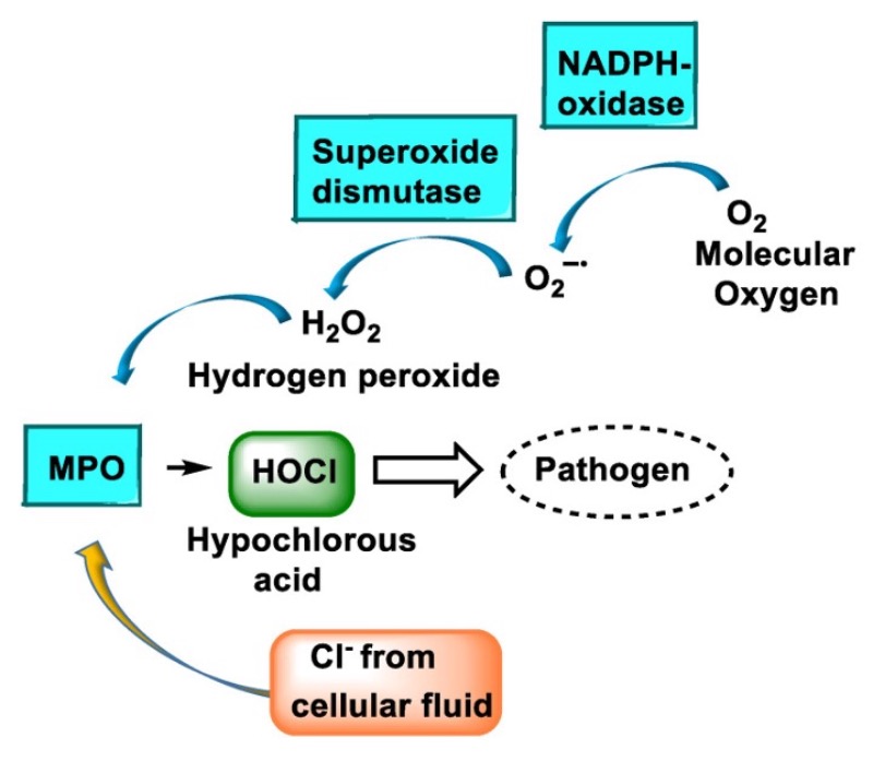 Sơ đồ quá trình hình thành HOCL trong cơ thể để tiêu diệt mầm bệnh