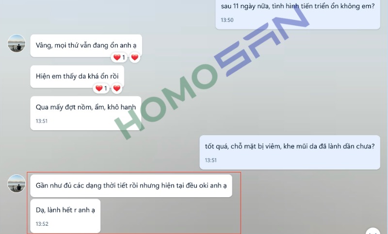Phản hồi của khách hàng bị viêm da cơ địa ở mặt về hiệu quả của HomoSAN sau 3 tuần